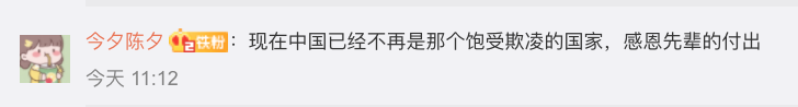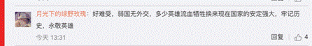 留言中,还有刷屏的感激,感激先辈付出,让中国不再饱受欺凌↓↓↓