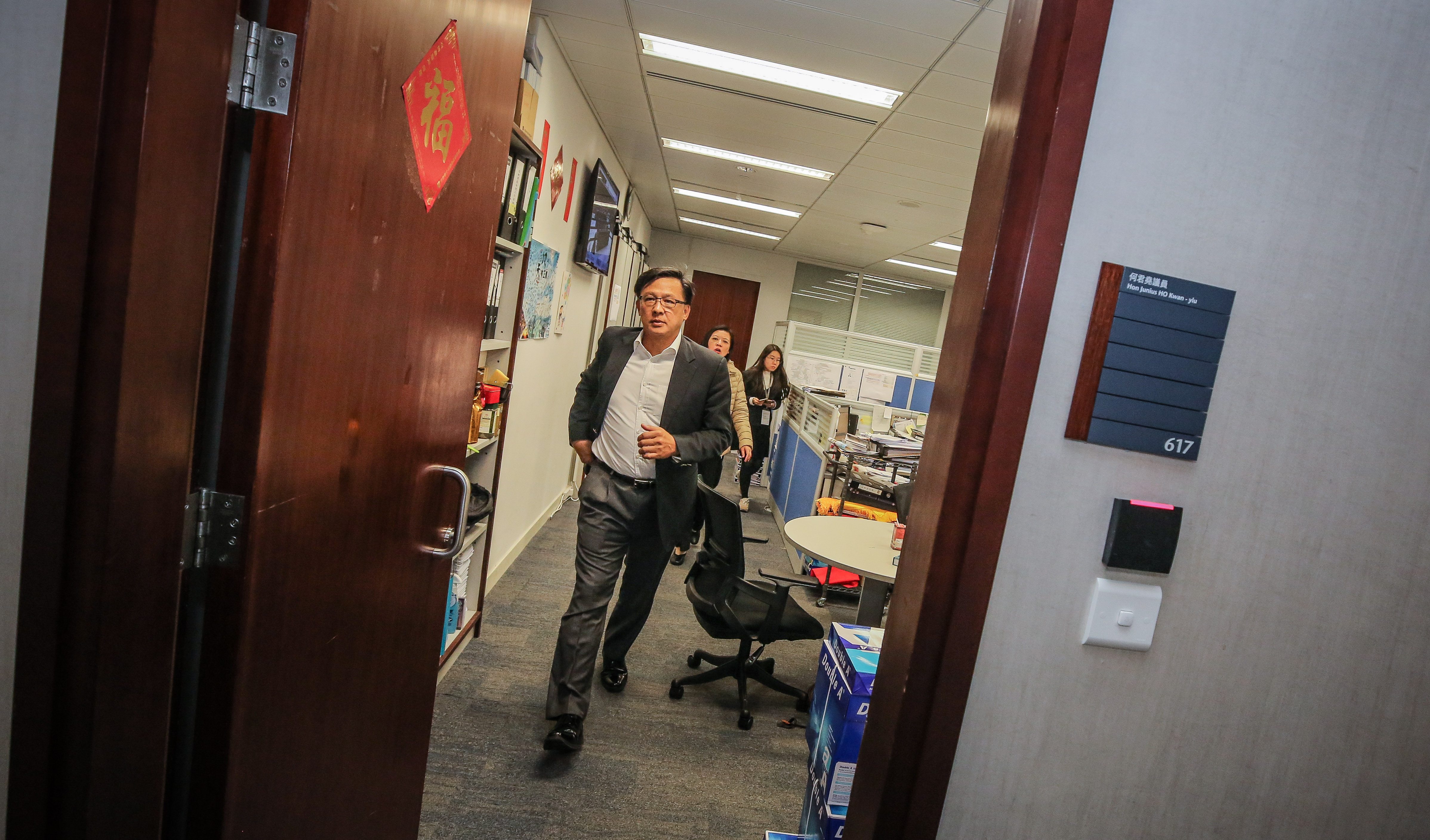 何君尧在立法会综合大楼会议厅宣誓现场