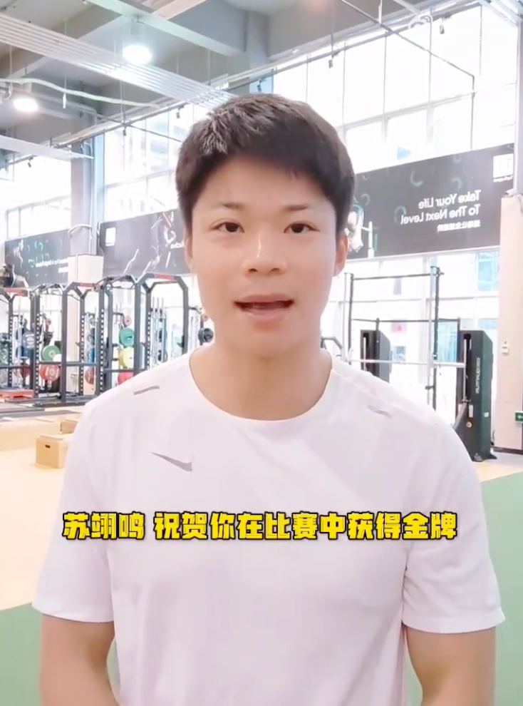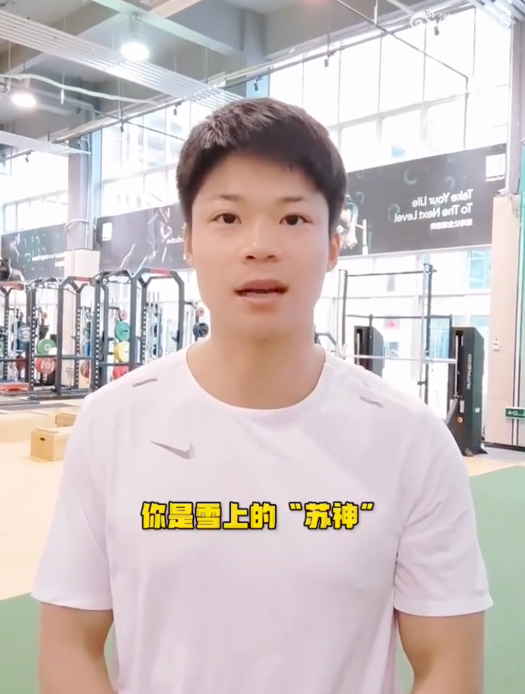2月15日苏翊鸣单板滑雪男子大跳台一举夺冠后,苏炳添为他录制祝贺视频。他说:“17岁的你就能完成世界级的最高难度动作,并且站上了最高领奖台,我们都为你感到骄傲,你是‘雪上的苏神’。”