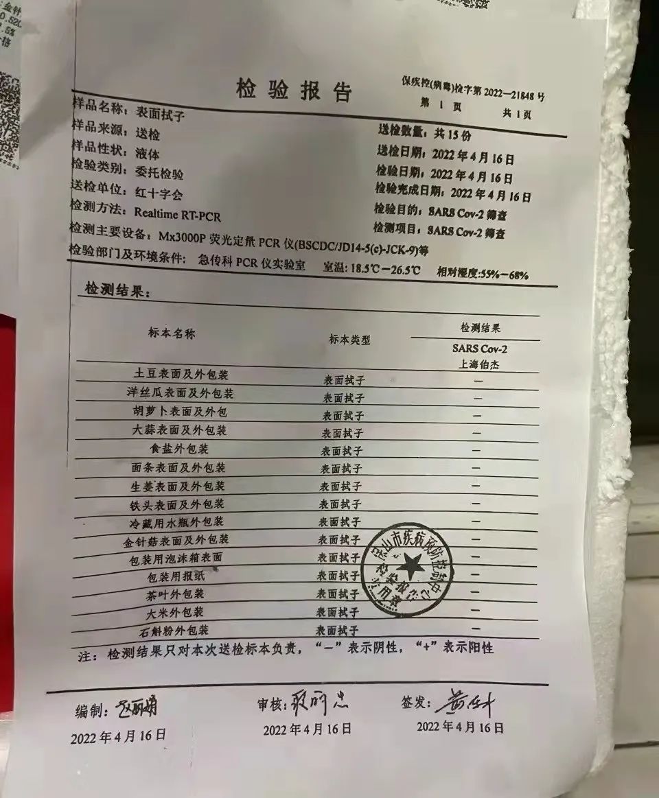 据了解,并经与保山市乡村振兴局核实,此批物资为4月18日保山市红十字会、保山市乡村振兴局发往闵行区虹桥镇、颛桥镇、七宝镇、浦江镇的捐赠物资。其中,石斛冻干粉、紫皮石斛粉、茶叶等少部分物资为当地公司、生态农场、合作社等爱心企业捐赠。由于数量有限,无法平均装入13398箱。故在分装过程中,分拣工人随机将以上物品分散装入部分泡沫箱,大部分箱内确实没有石斛冻干粉、紫皮石斛粉、茶叶等物资,且各箱物资也不尽相同 。分装前,为确保物资安全,所有物资均做了表面拭子核酸检测和农残检测,箱内附有的清单为检测报告,并非每箱物资的装箱清单。