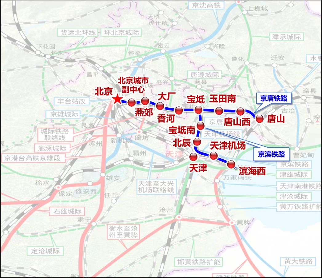 记者从中国铁路北京局集团有限公司获悉,京唐城际铁路起自北京城市副中心站,终至河北省唐山市既有唐山站,途经北京市通州区、河北省廊坊市、天津市宝坻区、河北省唐山市,线路全长约148.7公里,设计最高时速350公里。全线共设置车站8座,分别为北京城市副中心站、燕郊站、大厂站、香河站、宝坻站、玉田南站、唐山西站、唐山站。