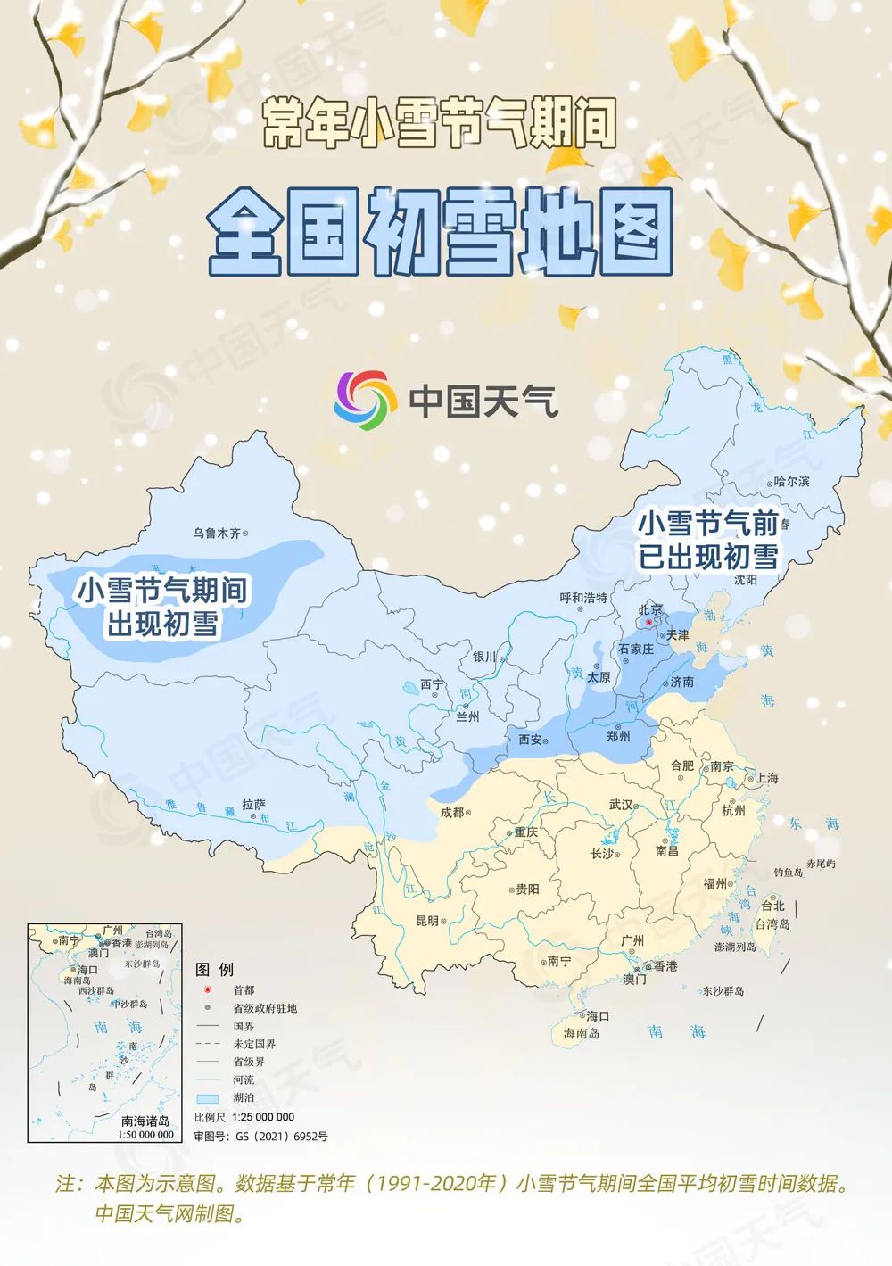 小雪节气全国初雪地图出炉