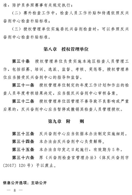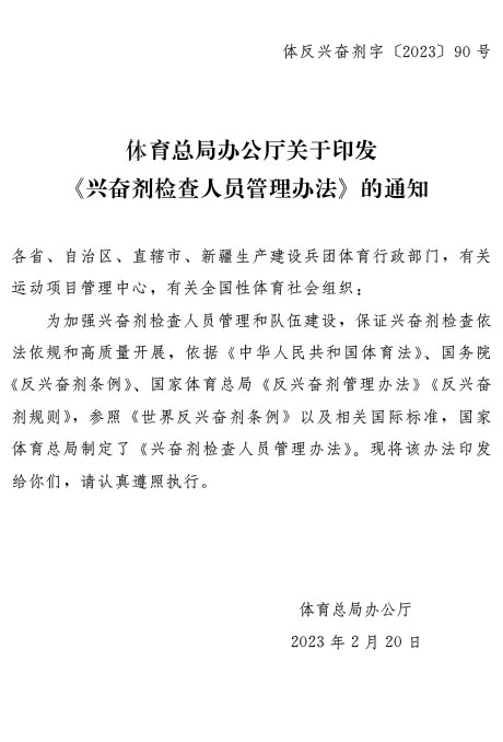 体育总局办公厅关于印发 《兴奋剂检查人员管理办法》的通知