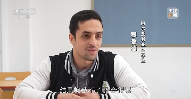 阿尔及利亚留学生 穆鲁德:还是很难,因为我们国家和中国有七个小时的时差,所以一般中国的早上是我们凌晨一点到四五点,但还是有录课,我们老师会帮我们录上课的视频。一开始我就想参加上课,跟老师和同学们互动,结果就受不了了,会很累。