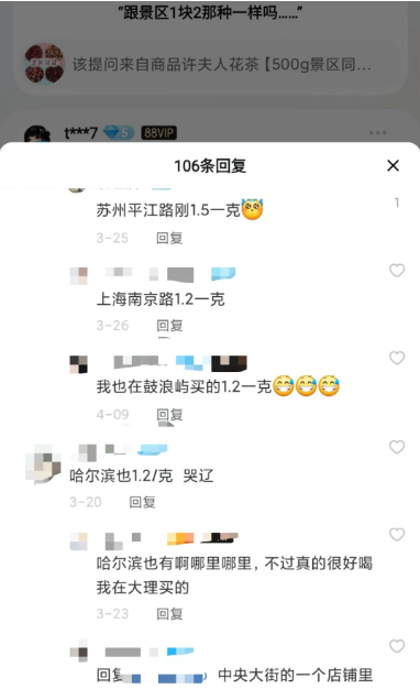 记者发现,这些消费者在评论中,绝大多数都对当初旅游时购买花果茶的行为表示后悔。只是有的碍于面子,有的认为“来都来了”,便对计量单位的误导行为不再追究。