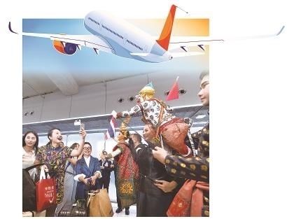 9月25日,工作人员在泰国曼谷素万那普国际机场迎接中国游客。新华社发