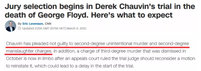 在距离案发已经9个多月、且比原定计划推迟一天后,弗洛伊德案终于在当地时间9日进入了审理程序。被告肖万目前被控二级谋杀和过失杀人罪,之前被撤销的三级谋杀指控也可能被恢复。而肖万本人已明确表示将提出“无罪”辩护。