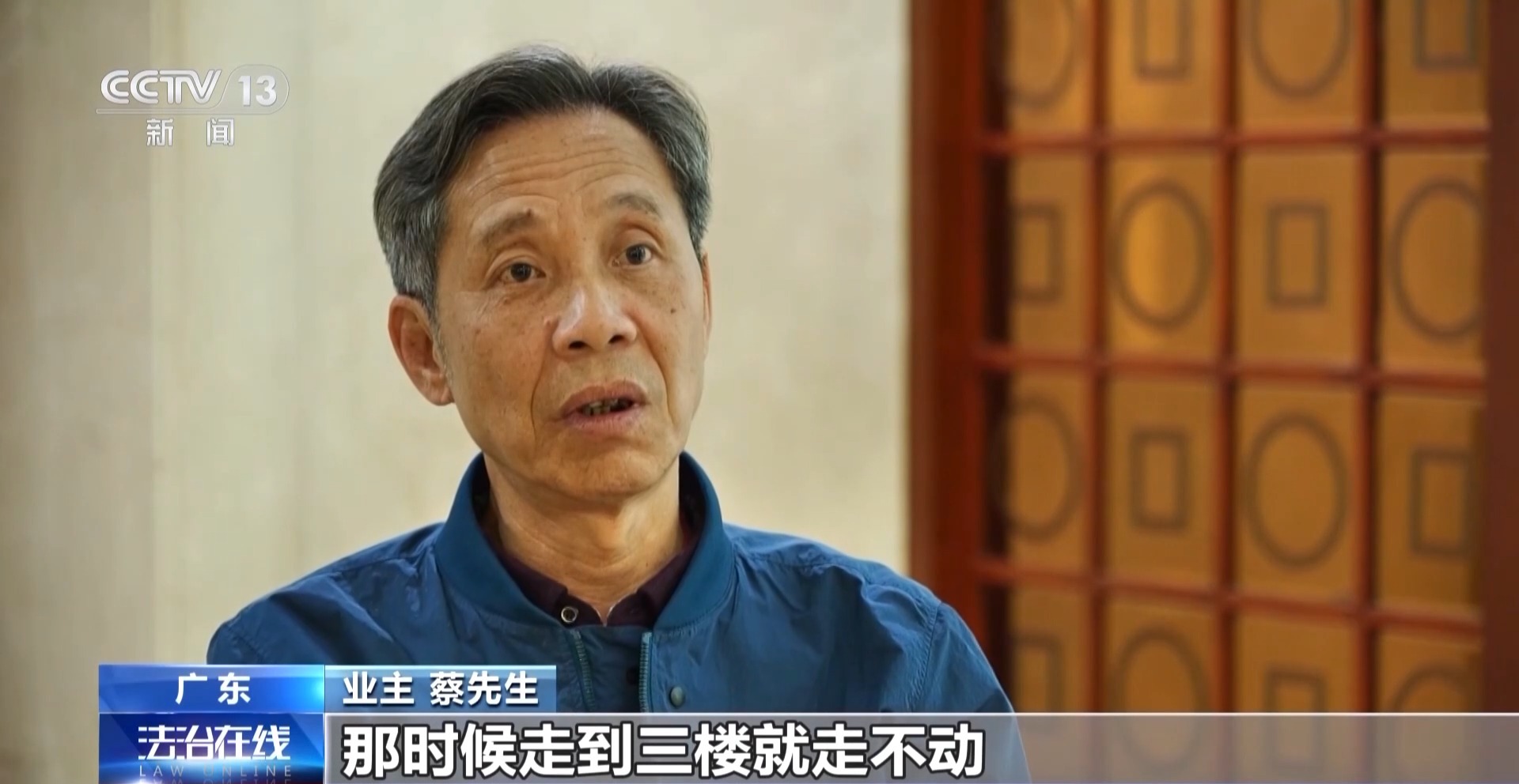 业主 蔡先生:年轻的时候,买楼的时候觉得八九楼好风光,又通风好,好凉快,后来年纪慢慢大,就觉得累了,开始八楼没问题,后来觉得上六七楼,就差一层楼就觉得有点累,后来慢慢,四五楼已经喘气了。