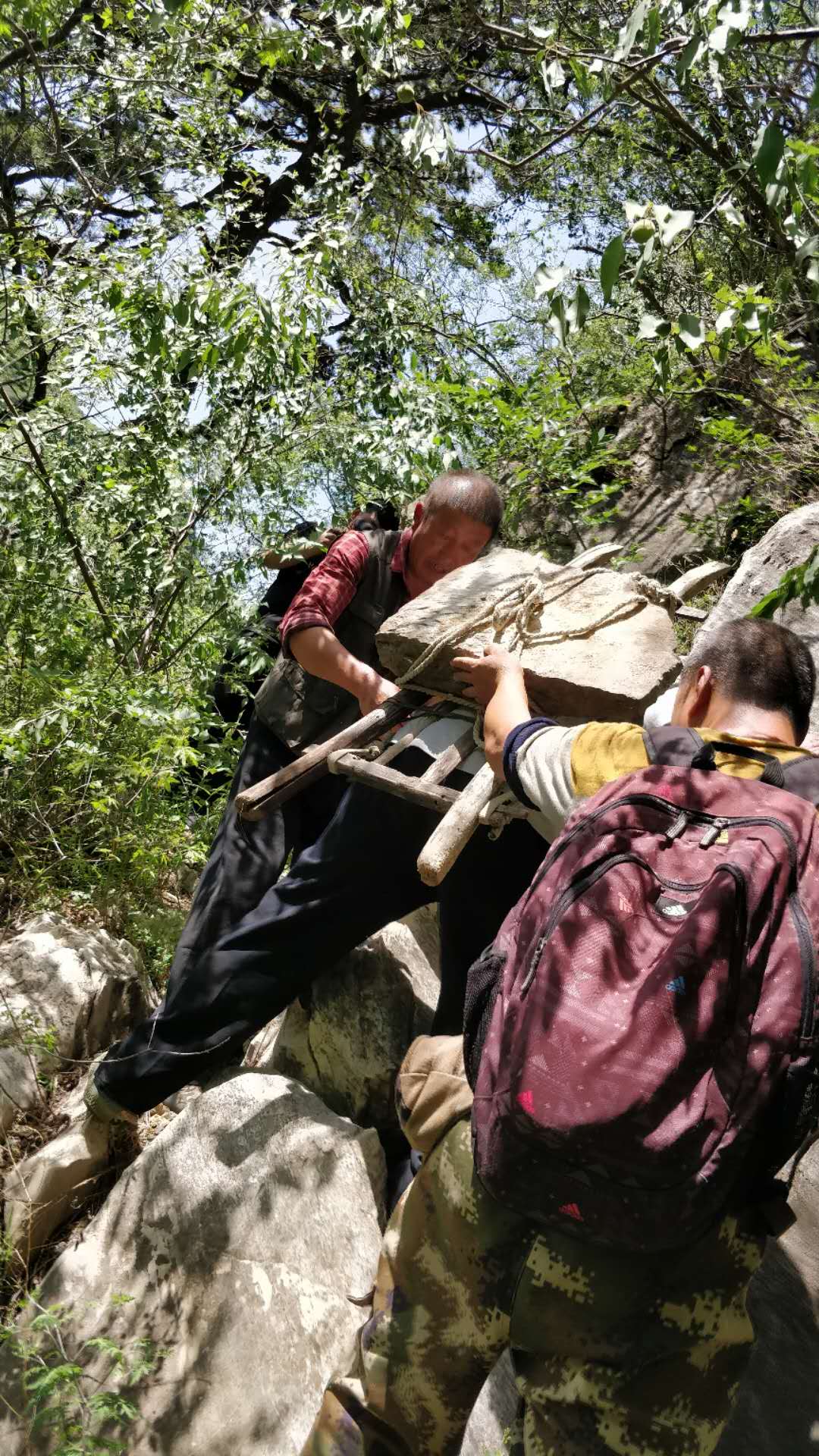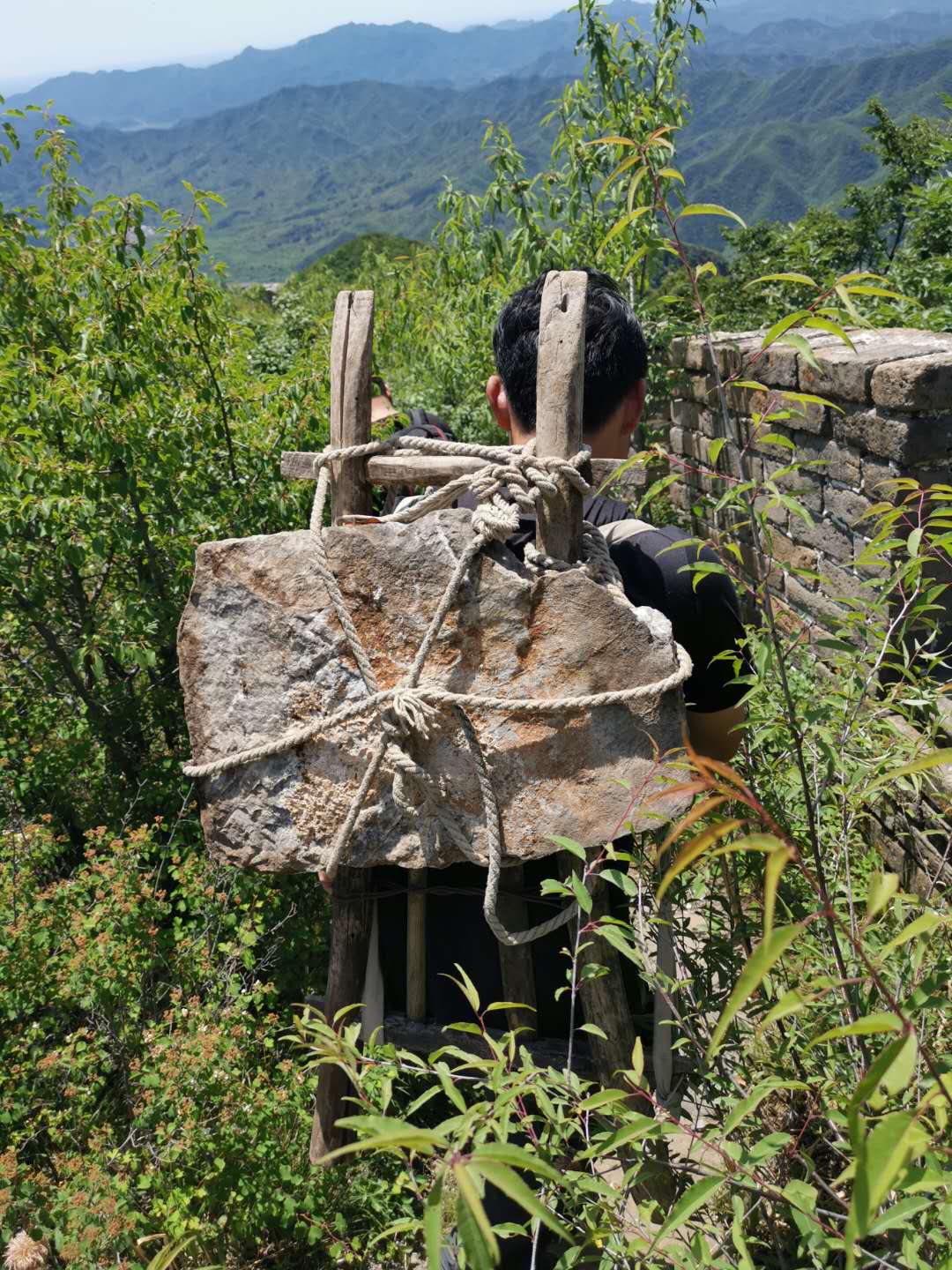 6月4日,怀柔区文物所组织工人上山运碑。“西大楼附近海拔900多米,上下要走8公里山路。从西大楼到天华洞,有两段加起来大概200米左右的路段特别艰险,坡度接近50度,全是小碎石头。我徒手走还滑倒了一次,工人背着石碑下山特别不容易。”参与运碑的怀柔区文物所工作人员王宇说,他还亲自体验帮工人背了一段。运碑小组早上8点上山,下午2点多才运下来。