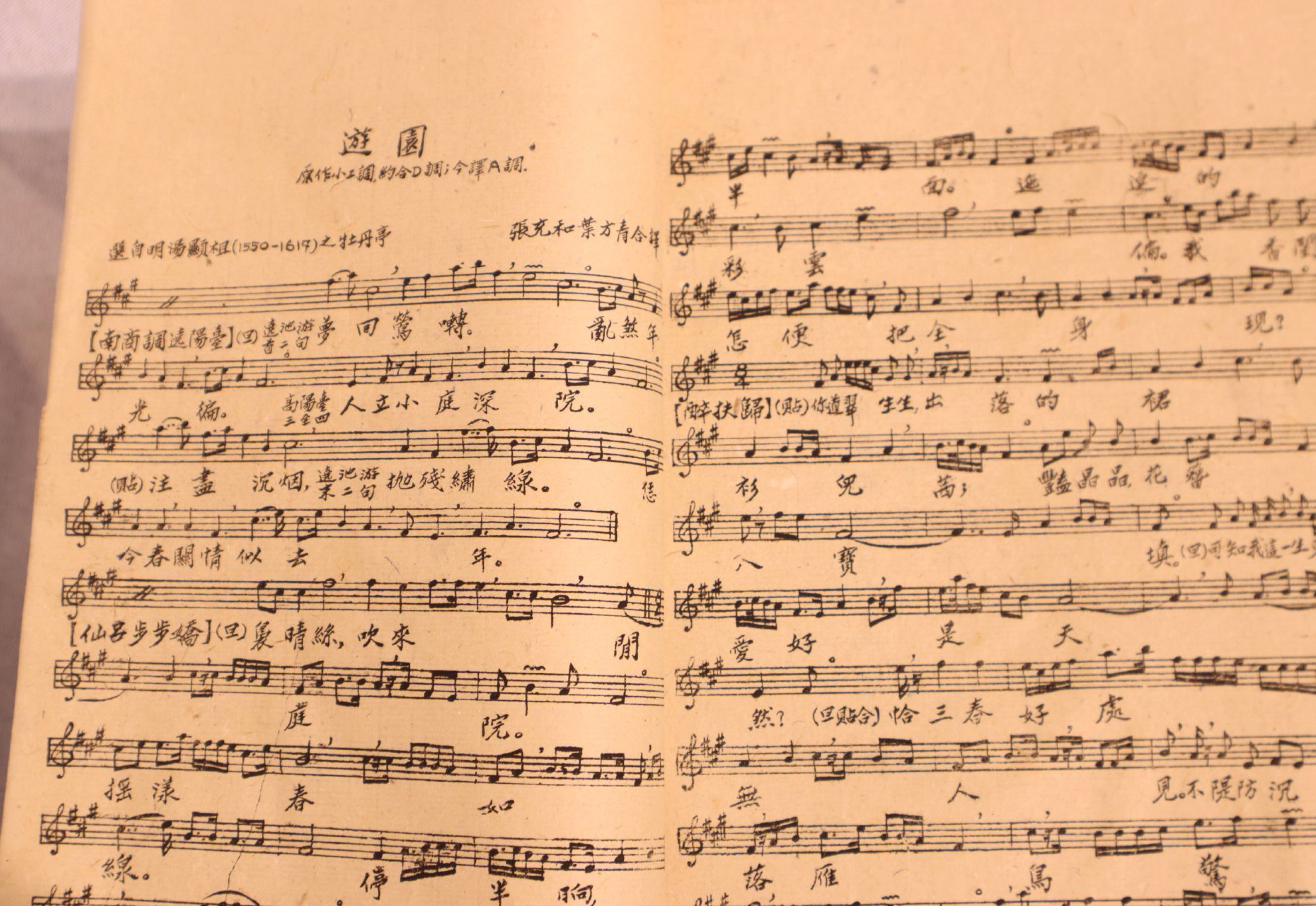 1944年,昆曲《游园》经张充和由原来的工尺谱变为现代五线谱本。
