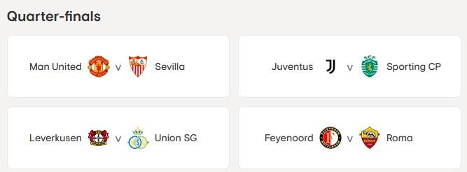 半区抽签与此前进行的欧冠结果类似,曼联与塞维利亚队、尤文与葡萄牙体育队在一个半区,这意味着,“红魔”和“斑马军团”这两支豪门球队最多只有一支可以晋级决赛。