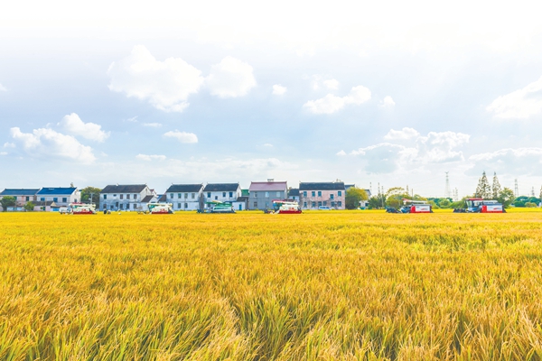 党的二十大强调全方位夯实粮食安全根基。10月31日,江苏省常熟市辛庄镇平墅村迎来了“退草还田”后的第一年秋收。(图片来源:视觉中国)