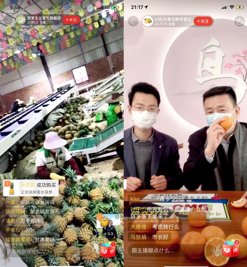 尽管各地的县长、市长没有主播红人们熟练的带货技巧,但他们推销的产品常常一售而空,让滞销农产品瞬间变身为抢手货。记者了解到,在浙江衢州市市长和广东徐闻县县长的两场直播中,总计近百万消费者围观了“带货”,徐闻菠萝和衢州椪柑在两个小时内均告售罄,两个直播间总共售出订单近7万单,累计帮助农民销售了约50万斤水果。