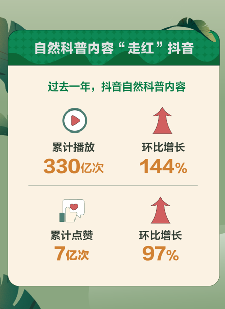 随着自然科普内容的走红,大批专业又有趣的科普创作者开始受到关注。据介绍,过去一年,抖音万粉以上自然科普账号同比增加107%。