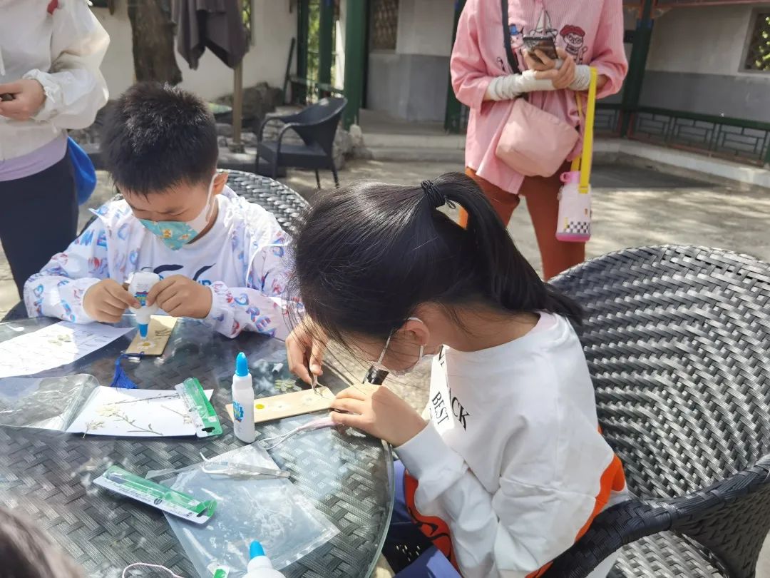 在“静宜时光”文化空间,由孩子们亲自动手进行干花书签制作,体验手工制作的乐趣。