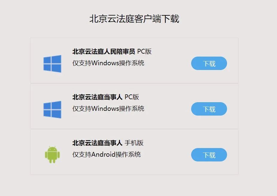 如使用电脑,点击下载“北京云法庭当事人PC版”(电脑端暂支持Windows系统)。