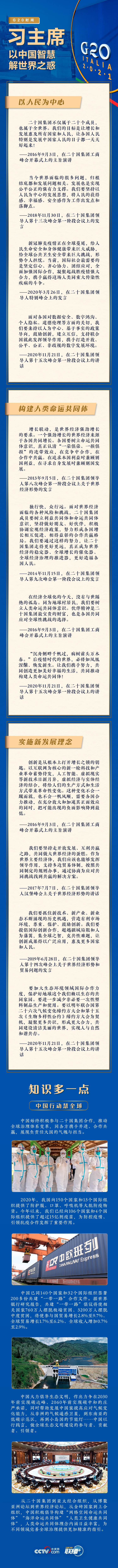 作为二十国集团轮值主席国,意大利为峰会确定了三个关键词——人、星球、繁荣。意方表示,会议将重点讨论如何加强卫生和环保领域合作,更好保护人类和我们的星球,以及如何抓住数字革命带来的机遇,努力消除“数字鸿沟”,实现强劲、包容和可持续的经济复苏。这同中方倡导的以人民为中心、构建人类命运共同体、实施新发展理念等不谋而合。