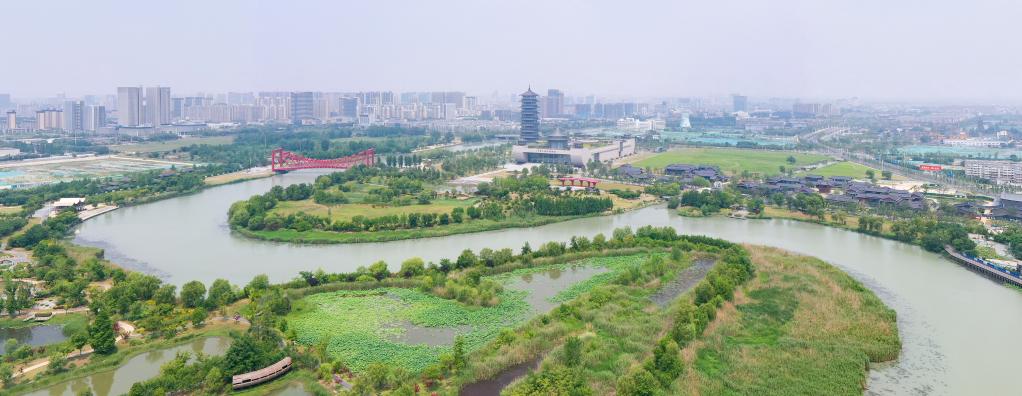 这是2022年5月25日拍摄的扬州市运河三湾景区(无人机照片)。新华社记者 李博 摄