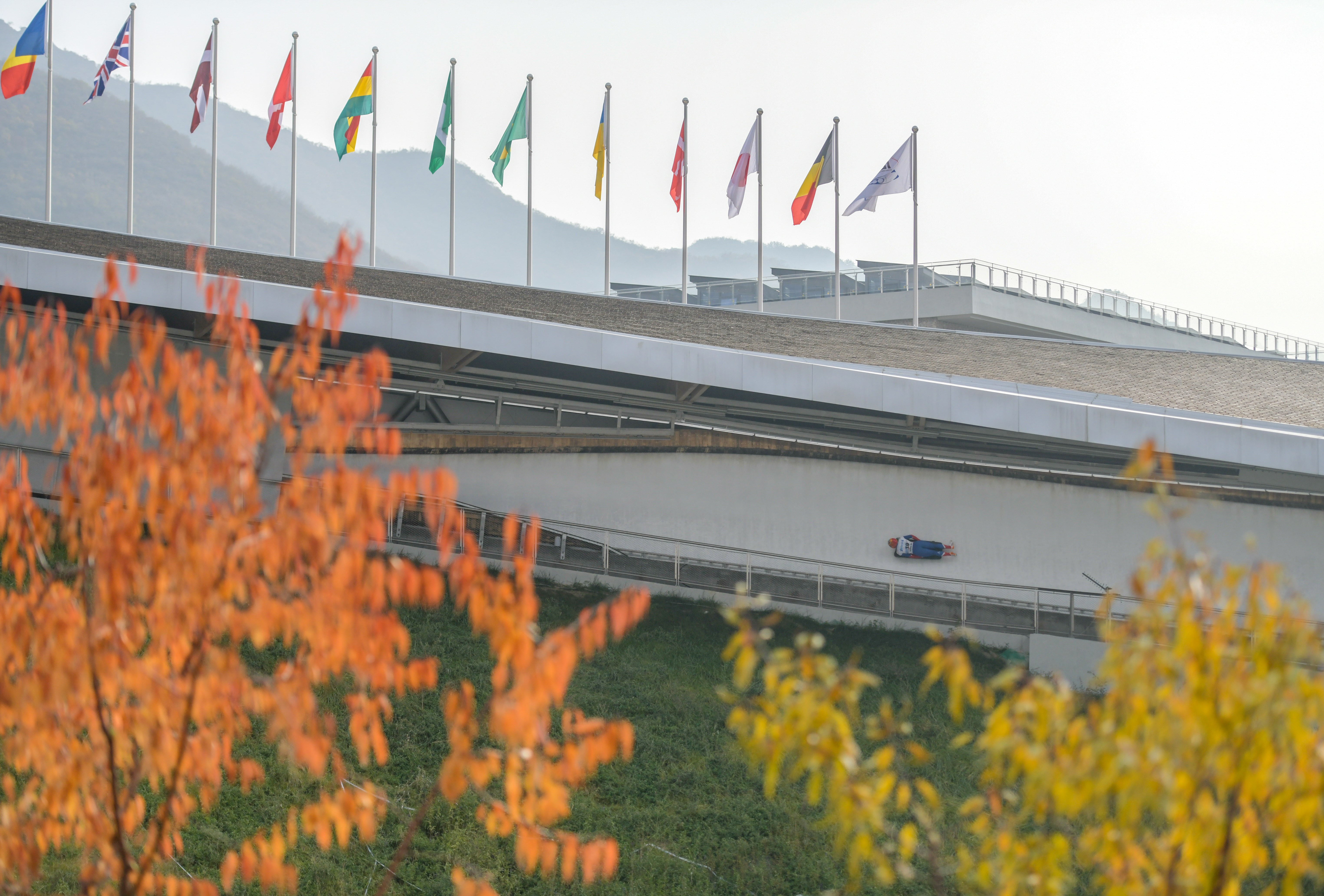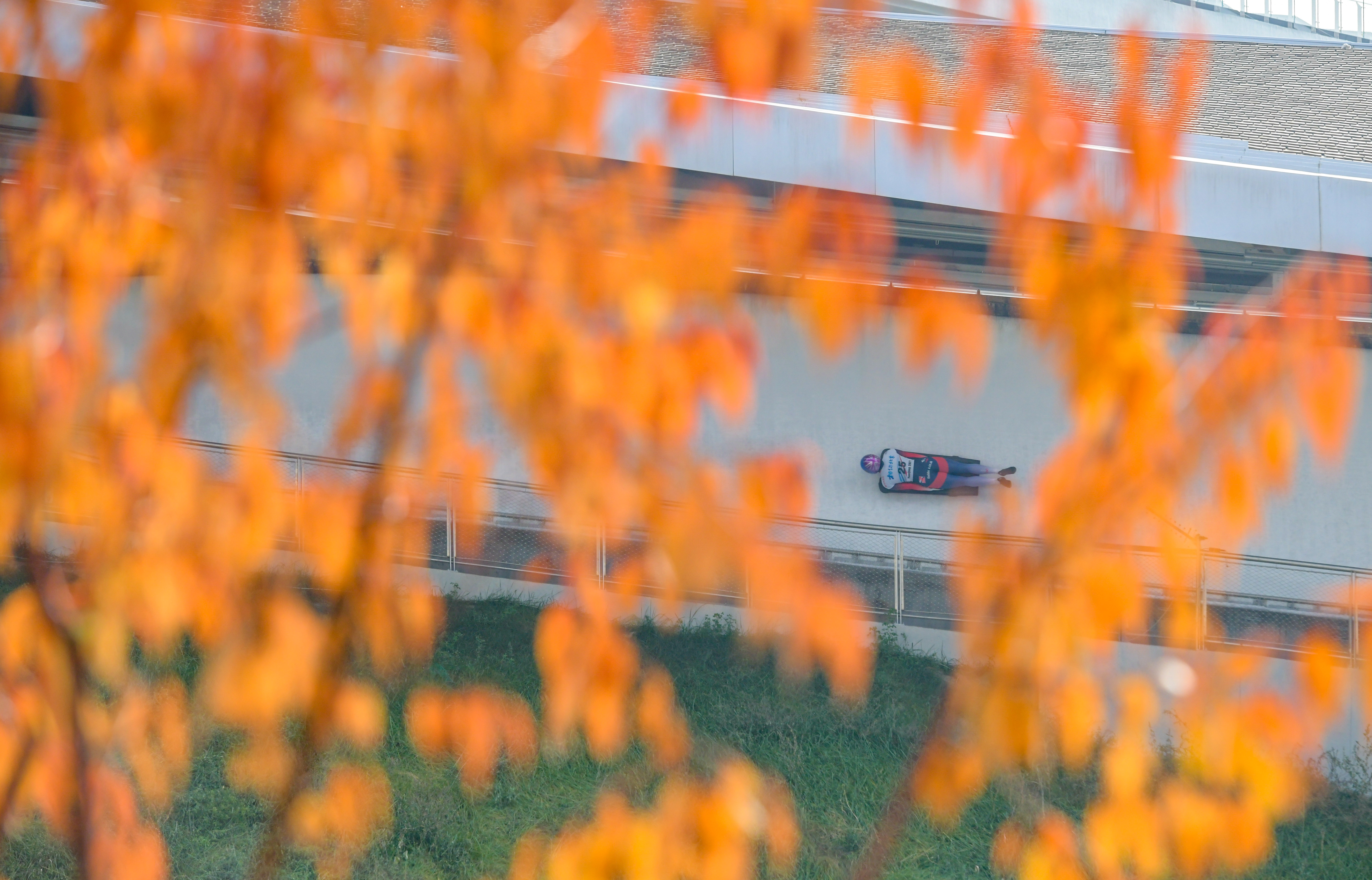 运动员在国家雪车雪橇中心赛道上比赛 潘之望摄