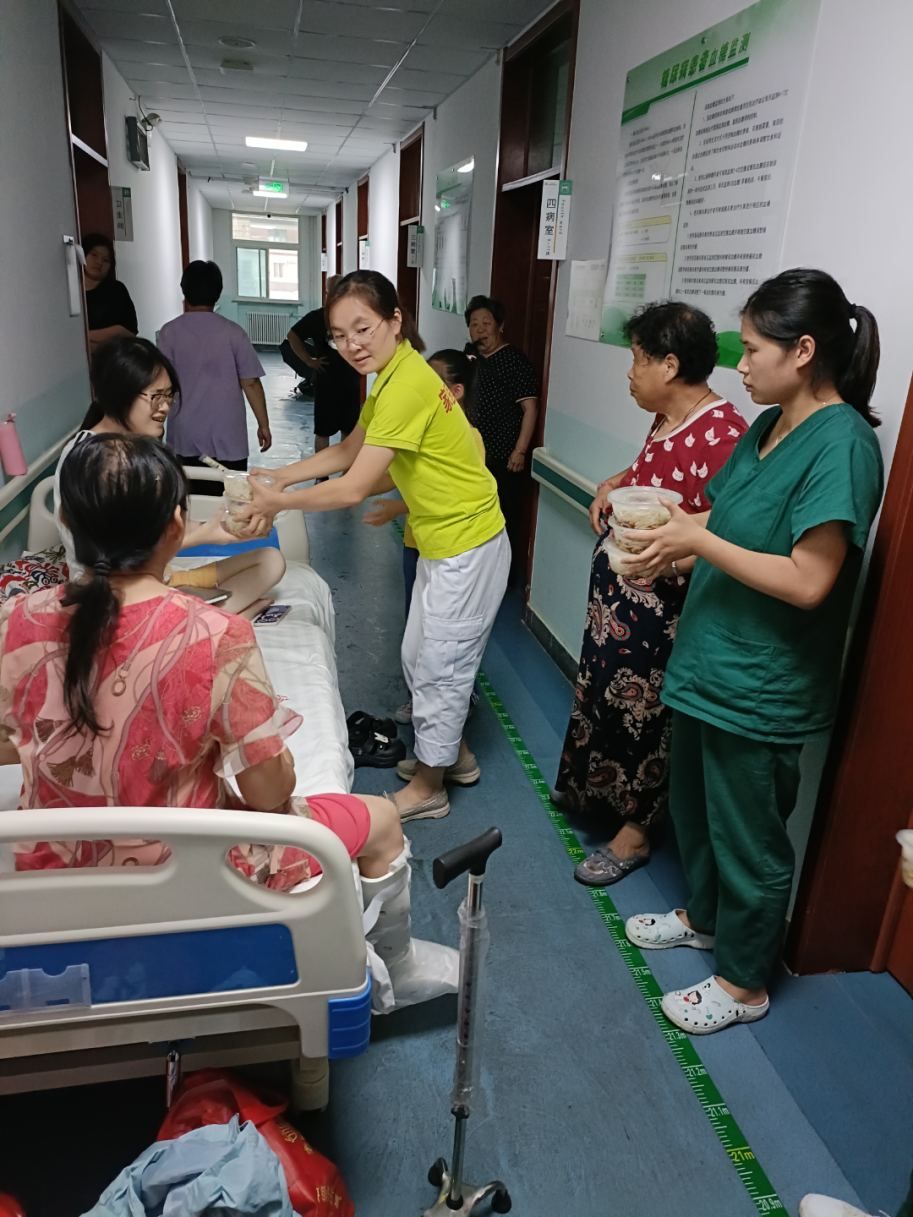 患者挽起的裤脚上满沾满了泥,呼吸急促、心率110次/分、血压180/90mmHg,提示患者随时可能出现生命危险。医护人员迅速给予救治,吸氧、监护、上机……一气呵成。当得知为了减少身体负担患者吃喝均很少时,透析中心主任王磊又安排了热腾腾的水饺,暖心的举动得到了患者和家属的赞扬和感激。