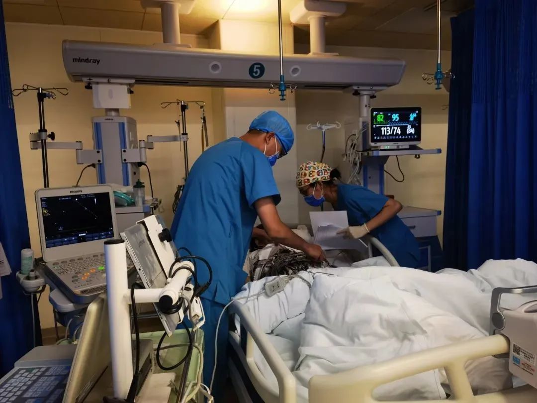 △孕妇到达良乡医院后直接进入ICU,医护人员立即为其实施心电监护、吸氧及心电图检查等,同时组织医疗救治小组进行全面检查。