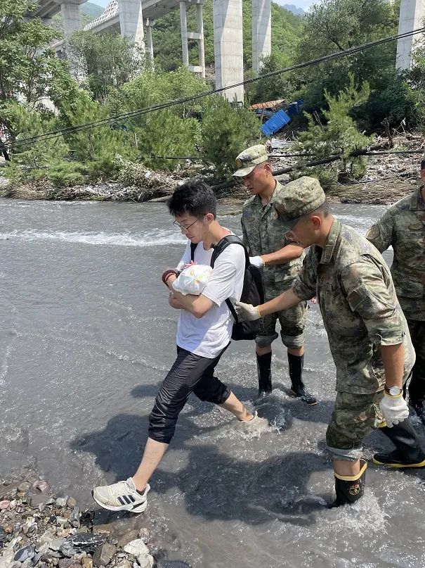 另一时空中,徒步前行的路上,还有门头沟区医院医生胡浩和汤鑫的身影。洪水在脚下流淌,河滩乱石将脚底硌的生疼,而胡浩怀里的婴儿,却睡着了,小家伙不时发出梦呓声。8月3日,门头沟区医院的医生胡浩和汤鑫,以及孩子家属、村干部将清水镇洪水峪村里的一对双胞胎婴儿,顺利转移到山下安置点里。他们在被洪水冲垮的山路上,徒步走了三个多小时。