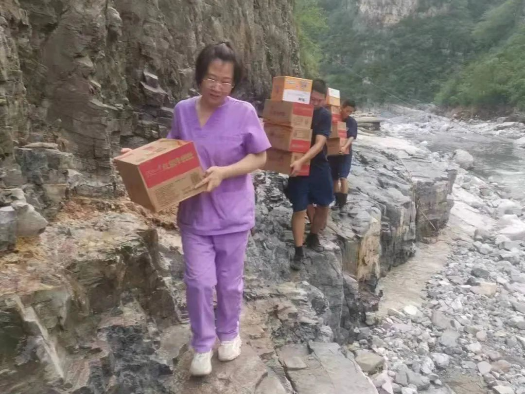 车辆到达十渡镇后,赵丽和杨守虎留守在镇政府,等待接应孕妇的同时与执行救援任务的消防官兵一起搬运物资。崔建伟、李舰、常晶湖在驻地消防官兵的护送下,开始徒步20公里前往孕妇家中。耗费近5小时后,医疗队终于到达这名孕妇家中,通过开展联合救治,帮助其稳定了病情。