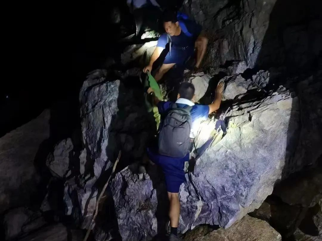 △崔建伟、李舰、常晶湖在驻地消防官兵的护送下,开始徒步20公里前往孕妇家中。