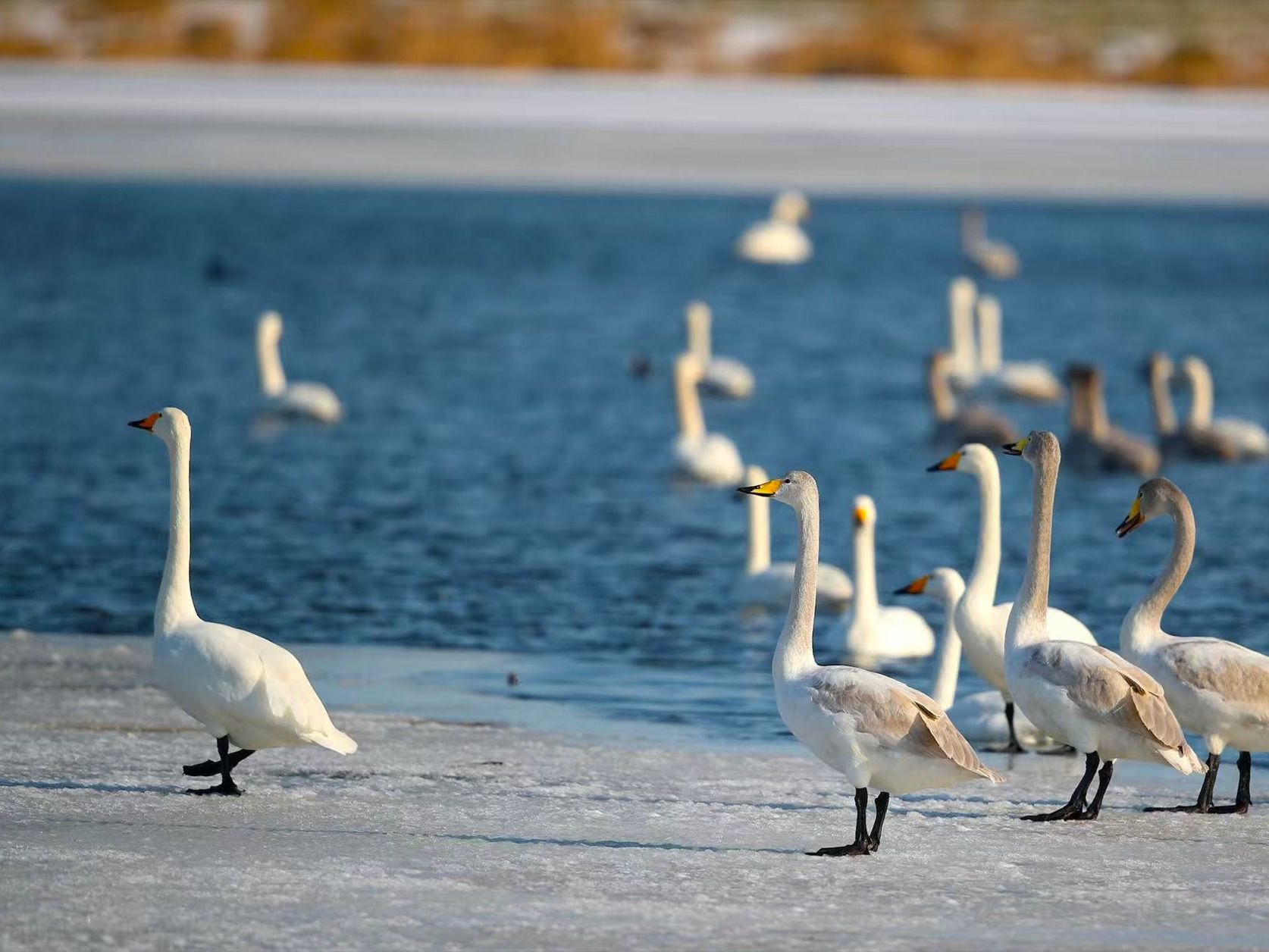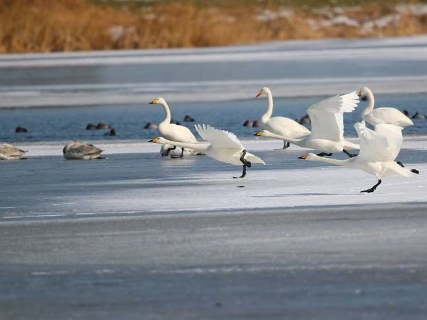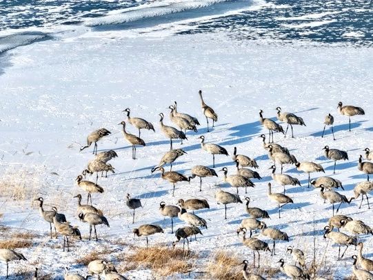 “冬日精灵”飞临延庆野鸭湖,上演“千鹤舞雪”