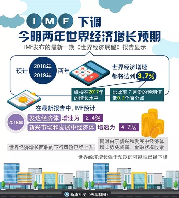 根据报告,2018年、2019年预计全球经济增长将保持2017年的稳定增长,但其速度不如4月预计的那么强劲。受到全球贸易冲突及新兴经济体面临的增长风险等因素影响,预计全球增长率为3.7%,比4月份预测的全球增长率下降了0.2%,这也是2016年以来的首次下调。
