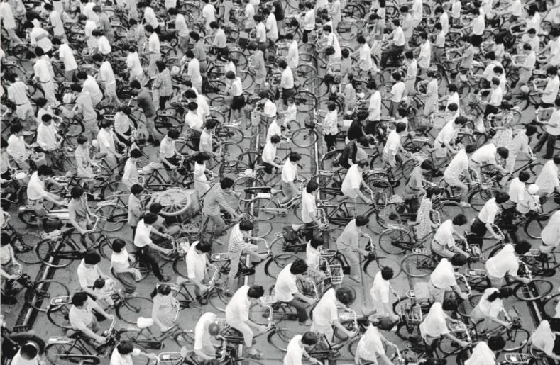1991年,上海,下班高峰时段的自行车大军。到二十世纪八十年代末期,中国自行车保有量达到了五亿辆。 靠自行车,中国人第一次整体改变了自己的速度。
