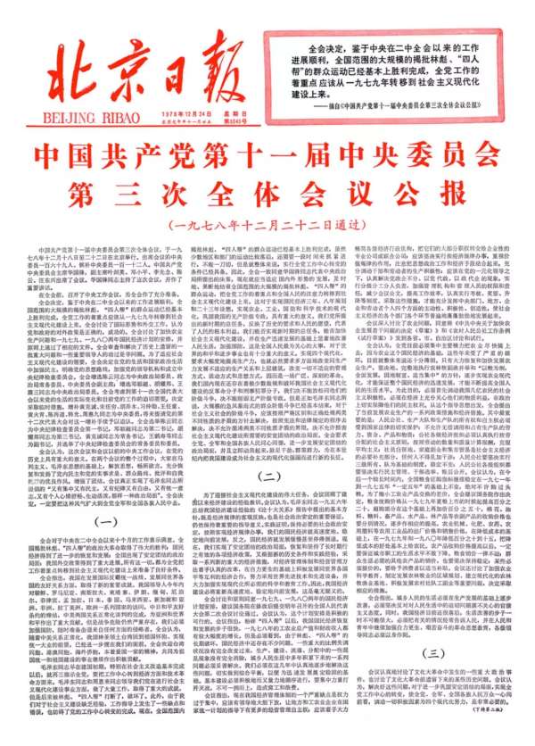 1978年12月24日,《北京日报》刊登十一届三中全会会议公报。