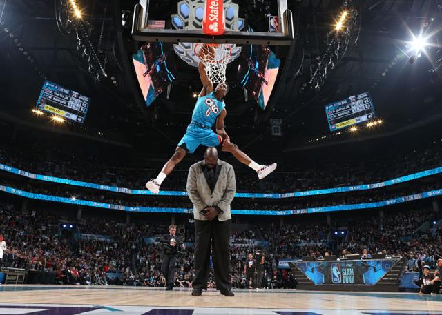 最后进行的扣篮大赛中,亚特兰大老鹰队的柯林斯、俄克拉荷马雷霆队的迪亚洛、纽约尼克斯队的小史密斯和夏洛特黄蜂队的布里奇斯展开竞争。4位小将虽然都身体素质出众,但扣篮动作缺乏创意,并未留下太多让人难忘的动作,只有预赛中迪亚洛飞跃“大鲨鱼”奥尼尔的隔扣在现场掀起了一阵波澜。