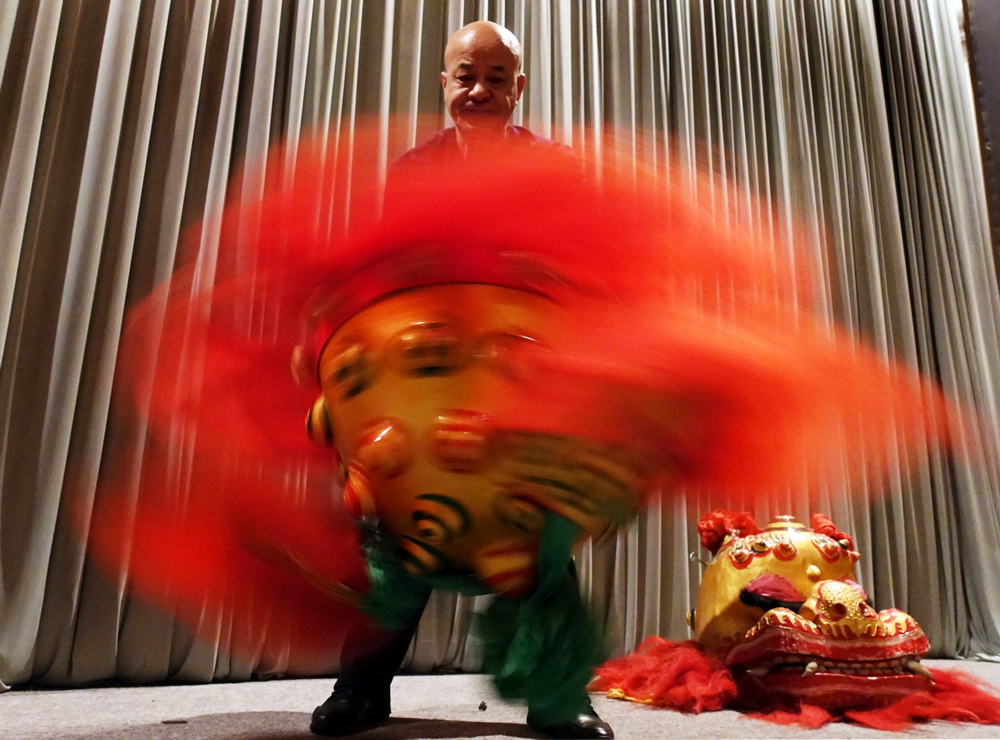 太狮的锣鼓点与其它舞狮不同,每个队员都要亲自练练击鼓才能舞得更好。