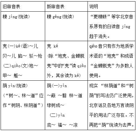 比如,“荫”字原审音表统读为yìn,北京话和各地方言实际读音仍然存在两种读音。根据调查,“荫凉”去声读音正确率为20.32%,“林荫道”去声读音正确率为5.98%,“树荫”去声读音正确率为3.98%,考虑到还有大量的人名、地名中使用“荫”字,读作阴平,新版审音不再统读,增列异读音yīn。因此,在修订稿中,荫蔽、荫翳、林荫道、绿树成荫,都读作yīn,庇荫、福荫、荫凉,则读作yìn。