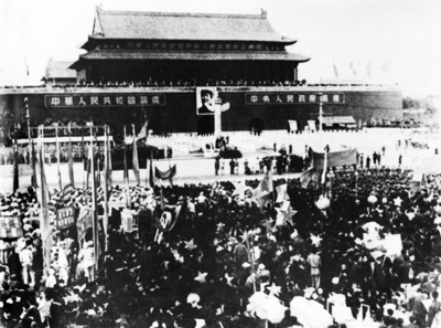 二是提供天安门广场的扩音设备。由于开国大典场面宏大、人员众多,要让广场上30万人都能听清毛主席的讲话,当时的扩音设备是很难达到的。为此,王铮局长亲自带领工程技术人员反复测试比较,最后决定使用缴获美国海军的“九头鸟”扩音器,它具有声音集中、失真度较小的特点。经过几次现场调测试验,终于达到了满意的效果。在开国大典上,毛泽东主席向全中国、全世界宣告:“中华人民共和国中央人民政府今天成立了!”人民领袖的雄伟声音久久回荡在天安门广场上空。