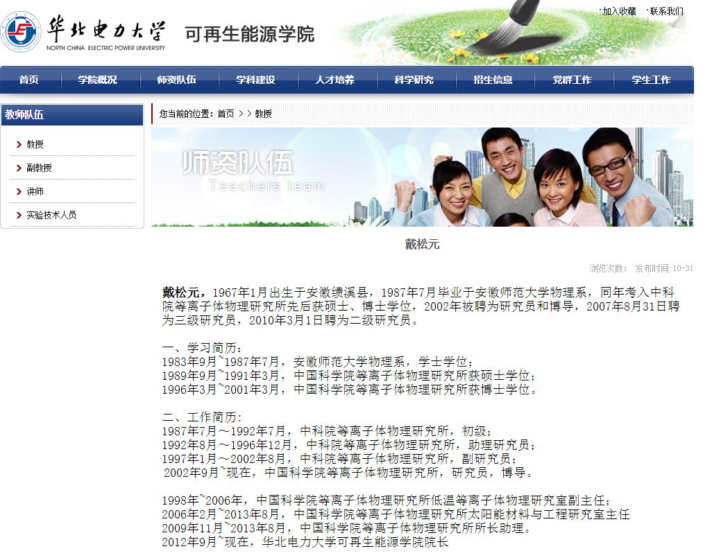 据官网消息,戴松元,1967年1月出生于安徽绩溪县,1987年7月毕业于安徽师范大学物理系,同年考入中科院等离子体物理研究所先后获硕士、博士学位,2002年被聘为研究员和博导,2007年8月31日聘为三级研究员,2010年3月1日聘为二级研究员。