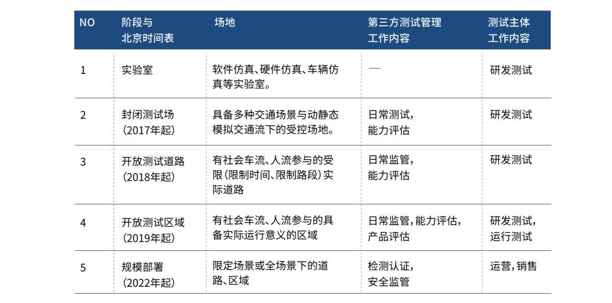 自动驾驶车辆想要运营和销售,必须先经过封闭测试场测试、开放道路测试、开放区域测试等环节的考验。该份自动驾驶报告由市经信化局等组成的北京市自动驾驶测试管理联席工作小组指导编制。报告显示,北京市在自动驾驶的政策制定、标准研制、路网开放、牌照申领、测试监管及应用示范等方面,均有探索。