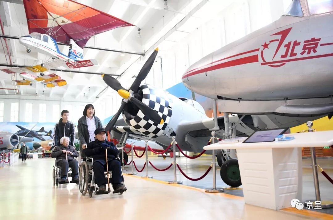 文传源先生和老伴儿易正本参观北京航空航天博物馆