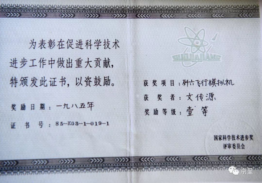 文传源先生因“歼六飞行模拟机”项目获得国家科学技术进步奖一等奖