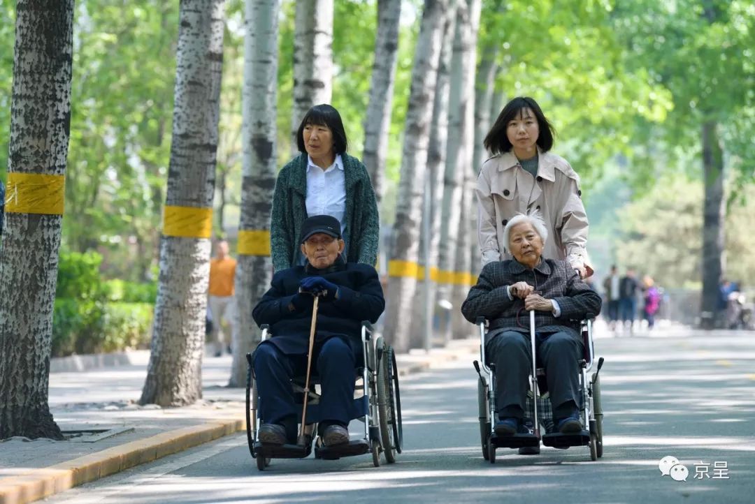 文先生和老伴儿一起在校园里散心