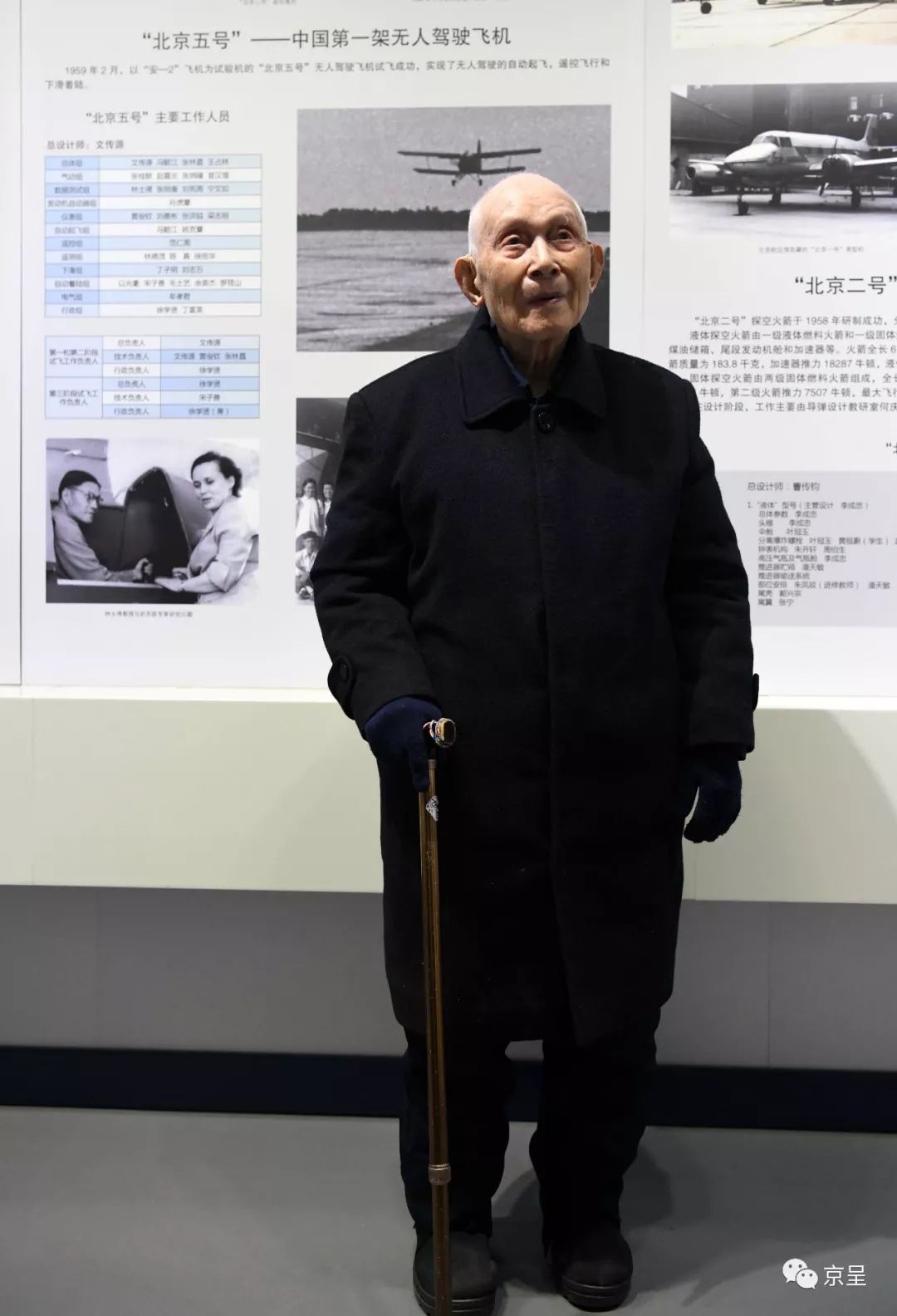 文传源先生在北京航空航天博物馆里观看“北京五号”历史记述