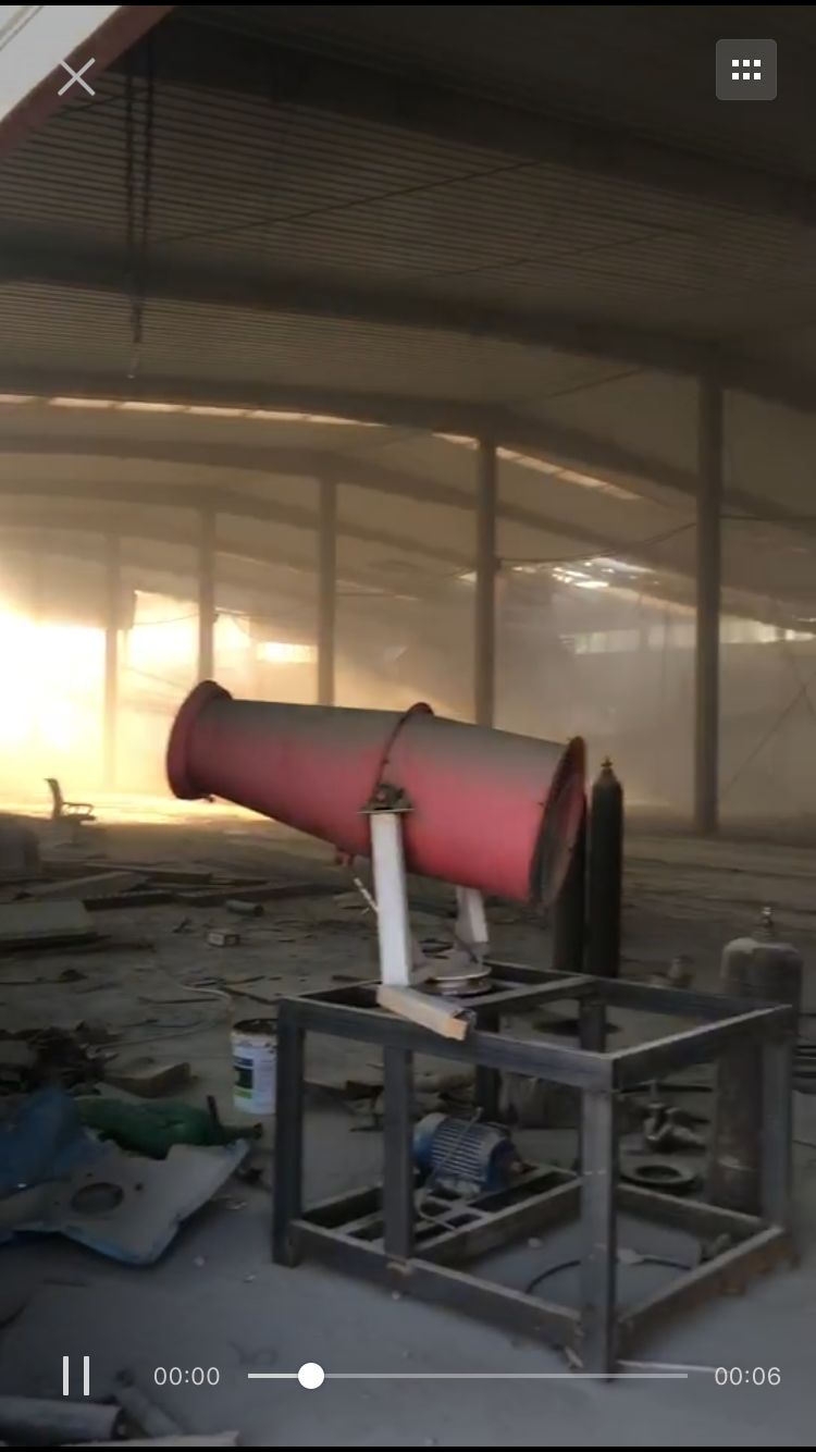一名业主向记者展示手机里的视频,只见一个被粉尘笼罩的巨大厂房内,机械轰鸣声震耳欲聋,有几名工人在里面走动。另一个视频里,露天的几台砂石粉碎机正在不停运转,巨大的响声让人都听不到旁边人说话的声音。记者还注意到一个细节,在被粉尘笼罩的厂房内,有一个用来降尘的小型水炮降尘机,停在厂房的一角,在上千平方米的厂房里显得微不足道。“我家桌子上的灰尘明显比以往多了,以前好几天的灰尘也没这么多,现在每天擦桌子上面就是一层浮土。”一位家庭主妇告诉记者。