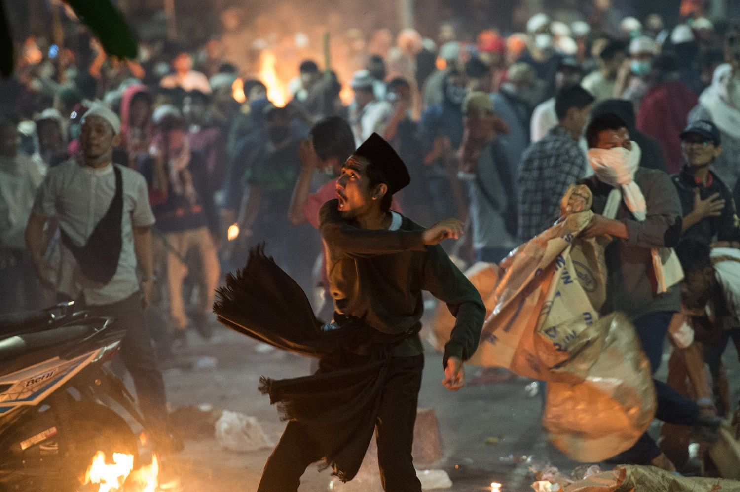 而后,普拉博沃的数千名支持者涌到位于雅加达中心的选举监督局大厦外示威,选举委员会总部就在大厦内。示威原本平和,可是晚上约11点突然来了一批人,企图闯过警方警戒线硬闯选举监督局大厦,还用石头、烟火、汽油弹等攻击警察,警察发射催泪弹。动乱延续到22日,两天共有6人死亡,至少347人受伤。