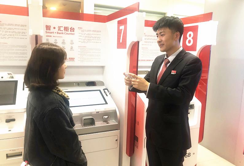 “厅堂经理对我们要求更高,客户享受的服务更好,职位名称改变的背后是银行大堂服务借助智能机器进行的科技升级。”杜鹏介绍,以前一进银行是大堂经理迎客,根据客户的业务需求引导至智能机器办理或转至柜台办理。如今银行里的智慧柜台越来越高科技,银行便让柜员走出柜台,和大堂经理一起升级为厅堂经理,普通业务帮助客户在大堂用机器办理,特殊业务再由有柜员资质的厅堂经理带领客户至柜台区办理,尽量1对1地处理客户业务需求,让服务更近更贴心,也实现了提质增效节能减员的企业发展需求。