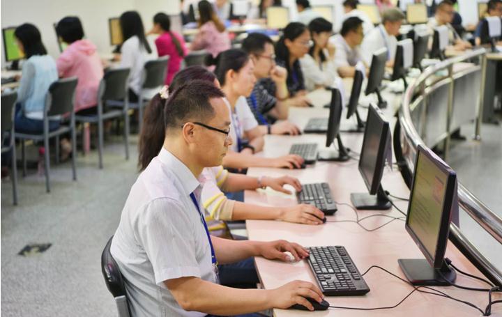 今天下午,在清华大学计算机开放实验室,记者看到,数学阅卷正有紧张严肃地进行,老师们认真阅读屏幕上的试卷,只听见鼠标轻点声。
