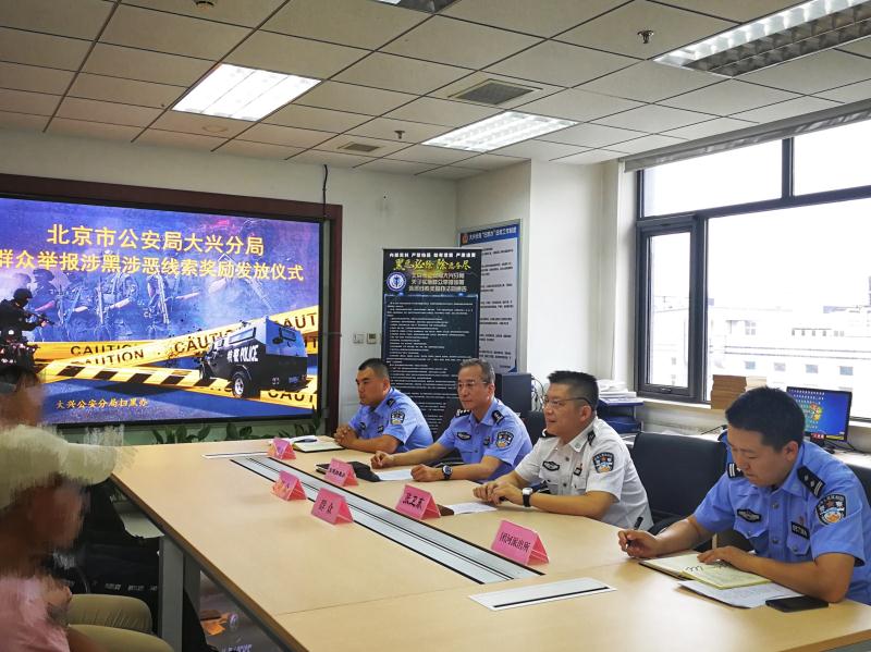 6月13日,北京市大兴公安分局举行扫黑除恶专项斗争线索举报奖励集中发放仪式,现场为5名举报人发放奖金1万元。