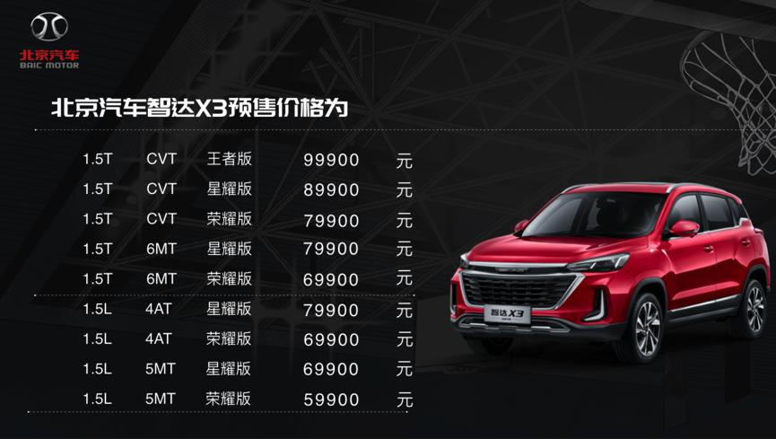 北京汽车智达X3搭载1.5T全铝涡轮增压发动机,并匹配了6MT和源自比利时Punch的高性能CVT两种变速箱,其中,“1.5T+CVT”的黄金组合,最大输出功率110千瓦,最大扭矩210牛·米。不仅如此,新车还兼顾用户对动力性和经济性的双重需求,零到百公里加速达到10.84秒,百公里综合油耗仅6.9升,成为新国标下A0级中为数不多的全系带T、10秒级破百的SUV。