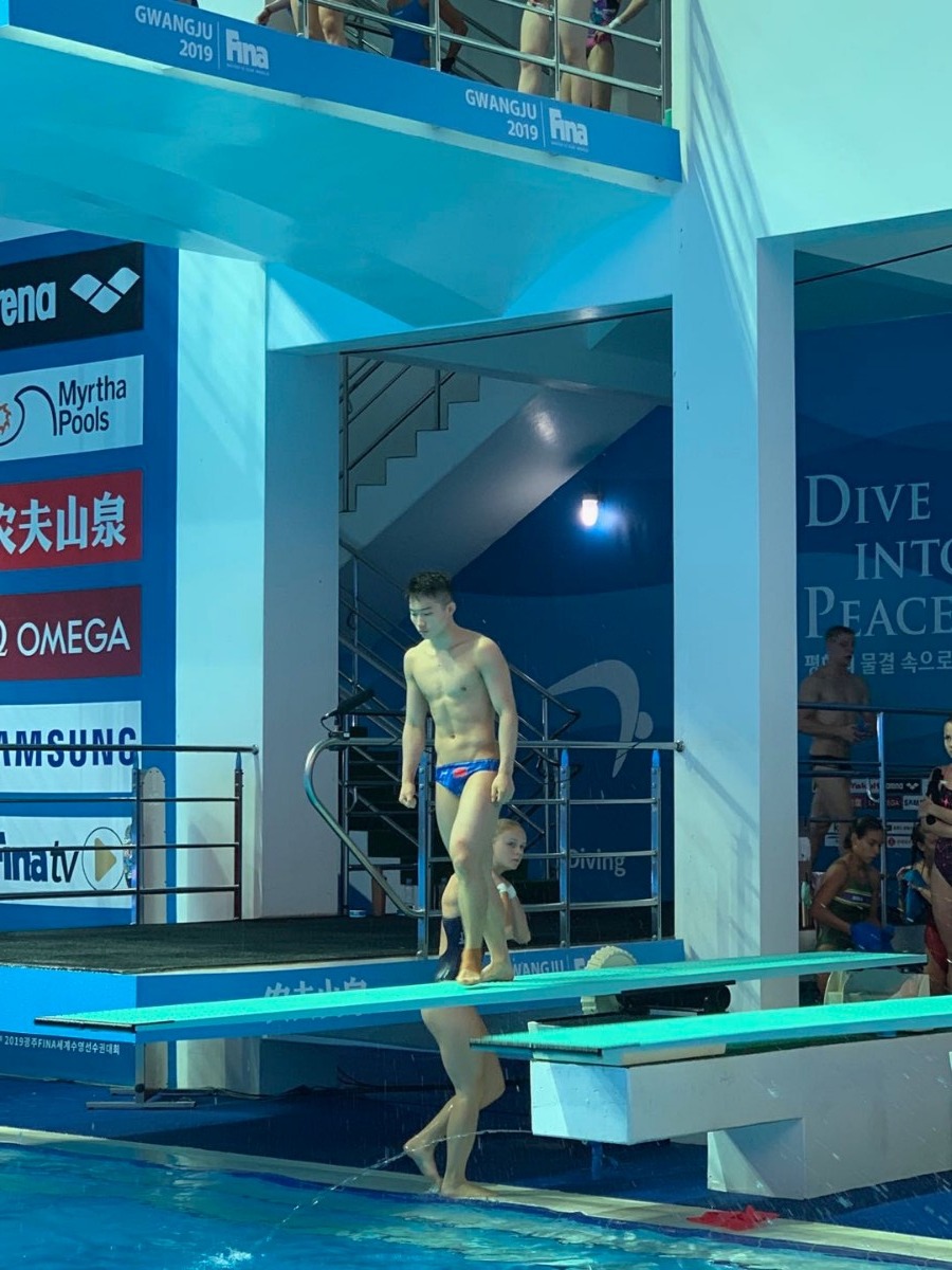 根据赛事官方的训练安排,中国跳水队昨天共有两个训练时段,分别是中午的11时30分至13时以及晚上的19时至21时。中国队昨天上午早早来到比赛场馆——南部大学市立国际游泳馆,在泳池训练的时间开始前,先进行陆上训练。参赛本届世锦赛女子10米跳台比赛的卢为、陈芋汐以及北京小将张家齐,都在教练员的带领下,于泳池边认真地牵拉着韧带,放松着肌肉。