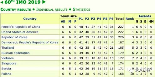 作为全球最负盛名的中学生数学竞赛,北京时间今天凌晨,IMO官方宣布了所有队伍的比赛成绩:中国队在4年后重登冠军宝座,以227分的总成绩与美国队并列世界第一,韩国队位列第三。